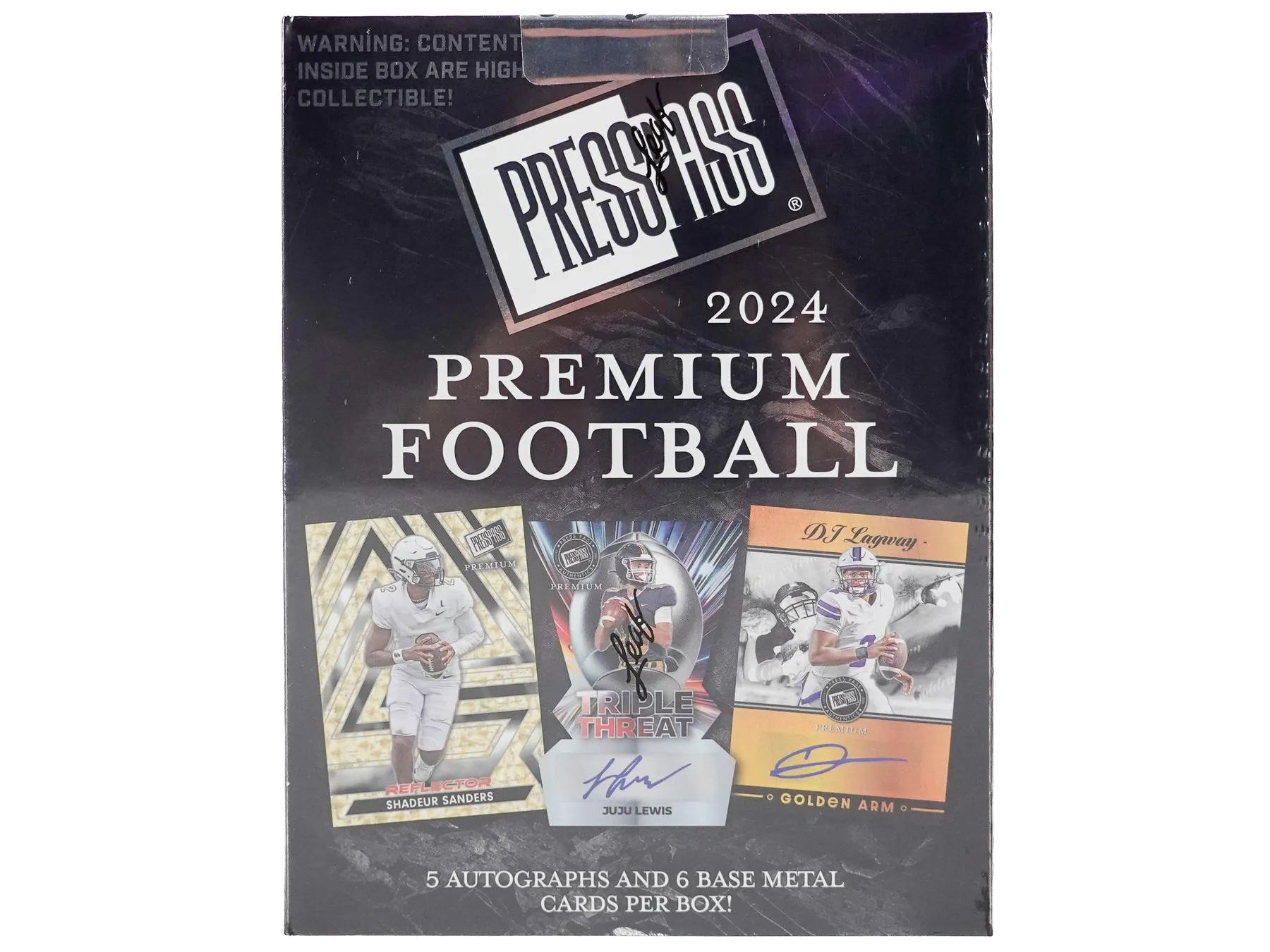 2024 Press Pass Premium will bring you the top football players from the past, present and future all on metal technology. Look